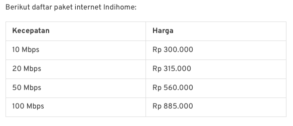 Harga berlangganan indihome sangat bervariasi, dari harga Rp 320.000/bulan pada Rp 1,8 juta/bulan, tergantung pada jenis paket yang Anda inginkan.