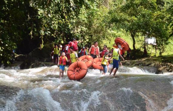 Di wisata ini setiap pengunjung dapat melihat pohon yang besar seperti membelah hutan  oleh sungai, terdapat batu warni, dan juga air bening, kegiatan ini boleh dibilang sebagai body rafting yaitu pencarian sungai dari hulu ke hilir dengan pemandangan alamnya yang menakjubkan. Dan ini bisa menjadi sebuah momen Anda dan keluarga yang tak terlupakan dan menjadikan hari libur Anda menjadi lebih mengesankan.